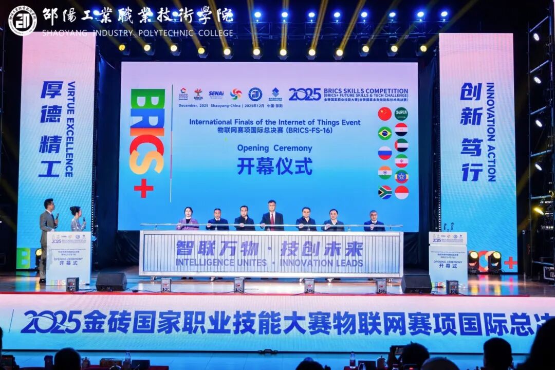 12月12日至14日,2025年金磚國家職業技能大賽物聯網賽項國際總決賽在邵陽工業職業技術學院成功舉辦。來自俄羅斯、哈薩克斯坦、孟加拉國、老撾等國家的17支國際隊伍和國內65支隊伍,共計160余名選手分別通過線上、線下的方式參加此次賽事。本次比賽由巴西國家工業技能培訓服務中心、金磚國家工商理事會主辦,金磚國家工商理事會技能發展、應用技術與創新工作組承辦,北京新大陸時代科技有限公司作為中方技術支持單位,為物聯網賽項提供比賽設備設施、技術人員、賽事保障等支持和服務,保障賽項順利開展。